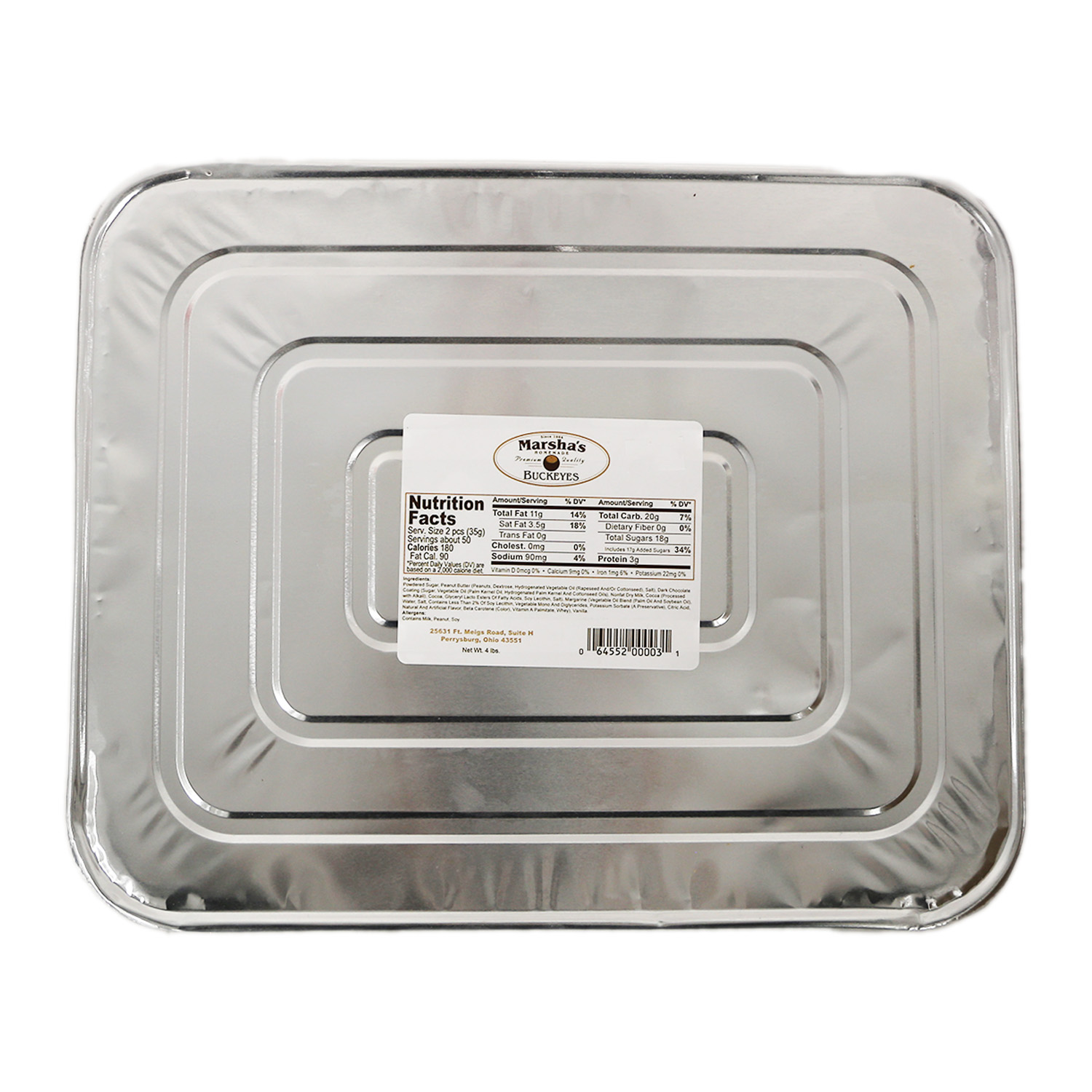 Confectioner's Sugar (sugar, cornstarch), Peanut Butter (roasted peanuts, sugar, partially hydrogenated cottonseed and canola oils, salt), Chocolate Coating (sugar, partially hydrogenated cottonseed and canola oils, salt), Chocolate Coating (sugar, partially hydrogenated palm kernel and cottonseed oils, nonfat dry milk, cocoa processed with alkali, cocoa, glycerol lacto esters of fatty acids, soy lecithin, salt), Margarine (liquid & partially hydrogenated soybean oil, water, salt, soy lecithin, mono & diglycerides, sodium benzoate-preservative, citric acid, artificial flavor, beta-carotene color, vitamin a palmitate added, dairy whey), Vanilla.