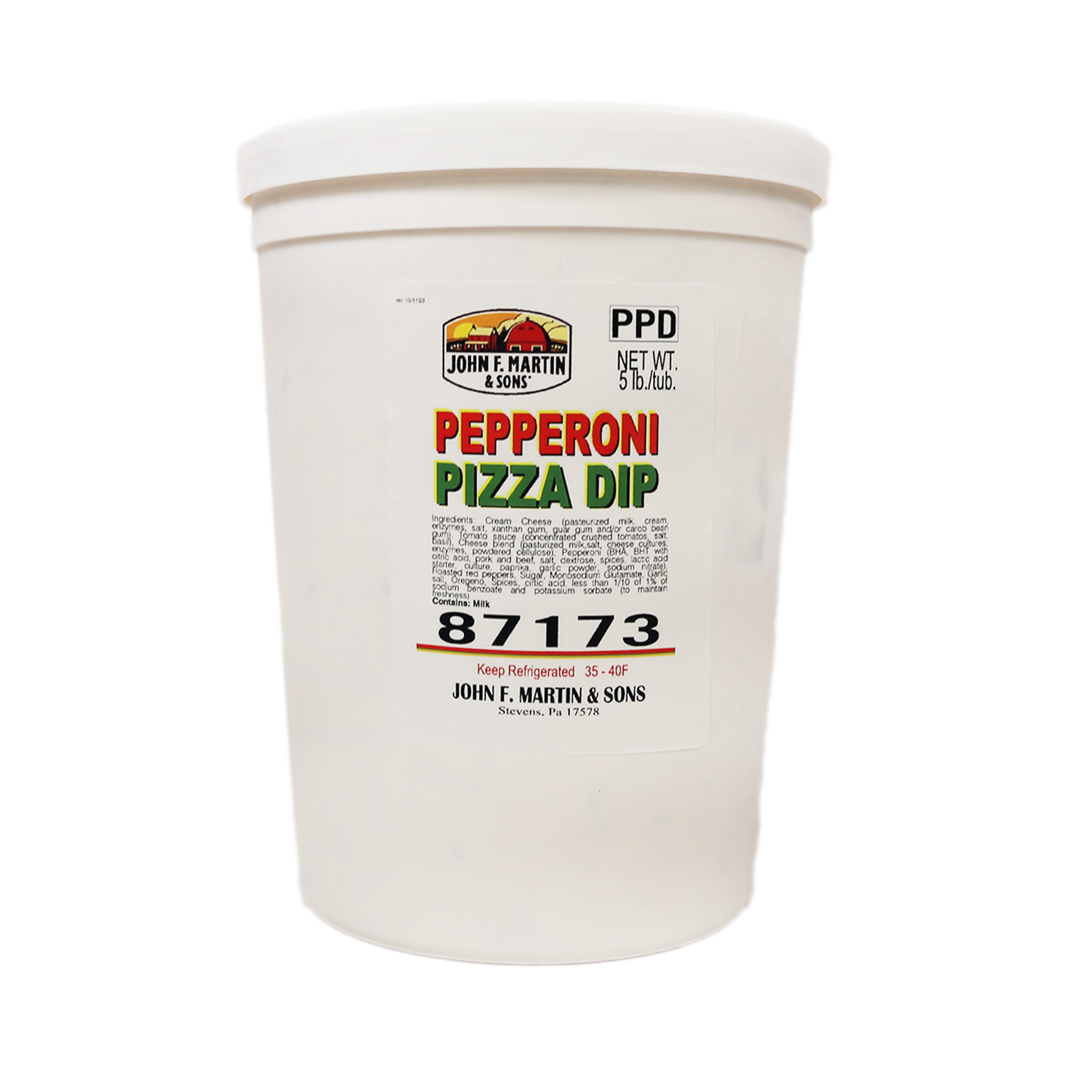 Cream Cheese (pasteurized milk, cream, enzymes, salt, xanthan gum, guar gum and/or carob bean gum), Tomato Sauce (crushed tomatoes, salt, spices, citric acid), Cheese Blend (pasteurized milk, cultures, salt, enzymes), Pepperoni, Red Peppers, Sugar, Garlic, Onion, Spices, Monosodium Glutamate, Salt, Citric Acid, less than 1/10 of 1% Sodium Benzoate and Potassium Sorbate (to maintain freshness).