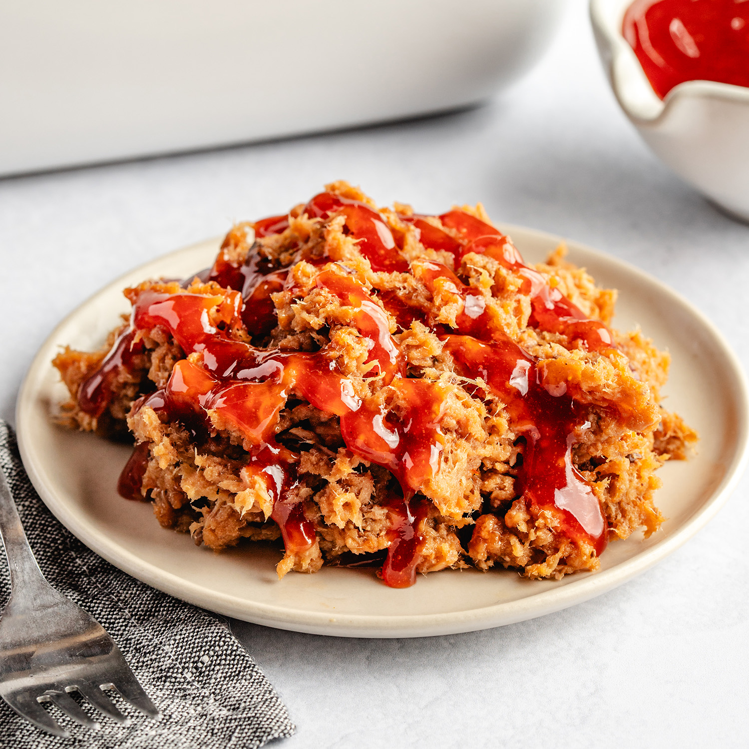 Boneless Pork Shoulder, BBQ Sauce: Ketchup (tomato concentrate (water, tomato paste), corn syrup, vinegar, salt, onion, natural flavorings, garlic), Brown Sugar, Honey, Dark Karo Syrup (corn syrup, molasses, salt, sodium benzoate), Coffee, Dijon Mustard (water, mustard seeds, citric acid, salt, onions, natural flavorings, garlic), Apple Cider Vinegar, Salt, Worcestershire Sauce (distilled white vinegar, molasses, sugar, water, salt, onions, anchovies, garlic, cloves, tamarind extract, natural flavorings, chili pepper extract), Seasonings: Cane Sugar, Sea Salt, Honey Powder (maltodextrin and honey), Paprika, Dried Garlic, Dried Onion, Annatto Seed (color), Celery Seed, Chili Powder (chili pepper and other spices, salt, garlic powder silicon dioxide added to prevent caking), Silicon Dioxide (flow agent), Paprika Oleoresin with Rosemary Extract (color), Marjoram, Chili Pepper, Garlic Powder, Dehydrated Onion, Disodium Inosinate, Disodium Guanylate, Tricalcium Phosphate (to prevent caking).
