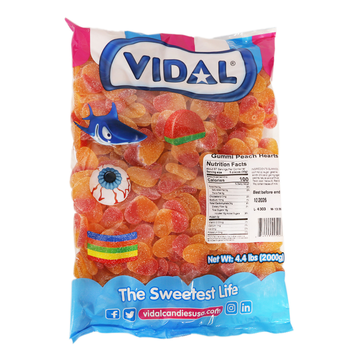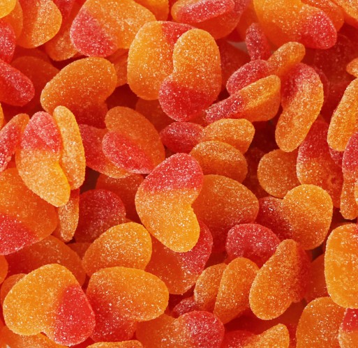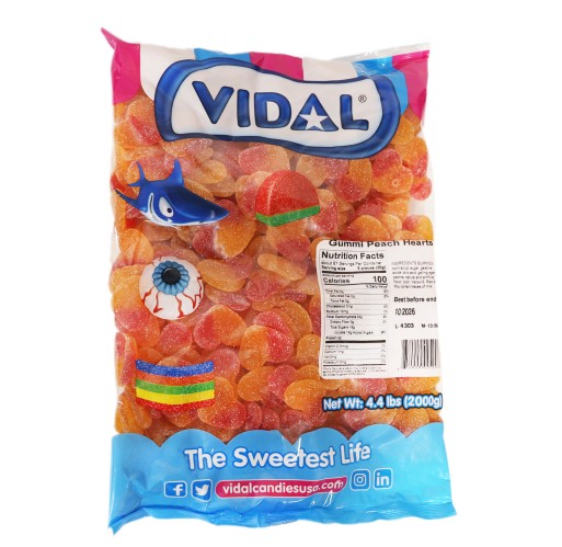 These heart shaped gummies have the taste of ripe juicy peaches packed into a sweet chewy candy.